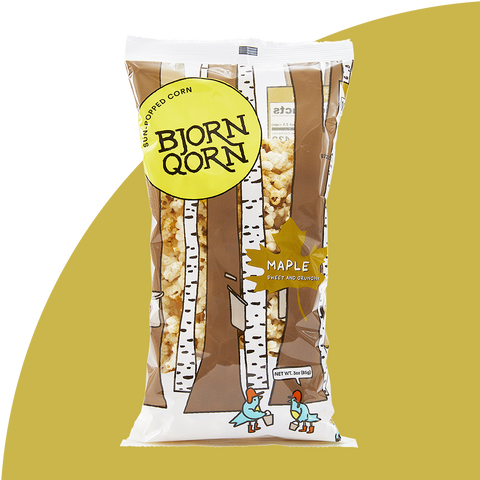 BjornQorn Maple is our take on kettle corn. It is also our first foray into the sweet dimension, and its very nice here! You may have heard of it as a component of our famed Holiday Tin. Maybe you've even been lucky enough to try it. Either way its finally here to stay!