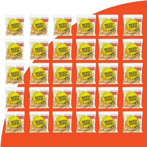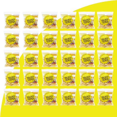 30 Bjorn Qorn classic 1oz bags on yellow background.